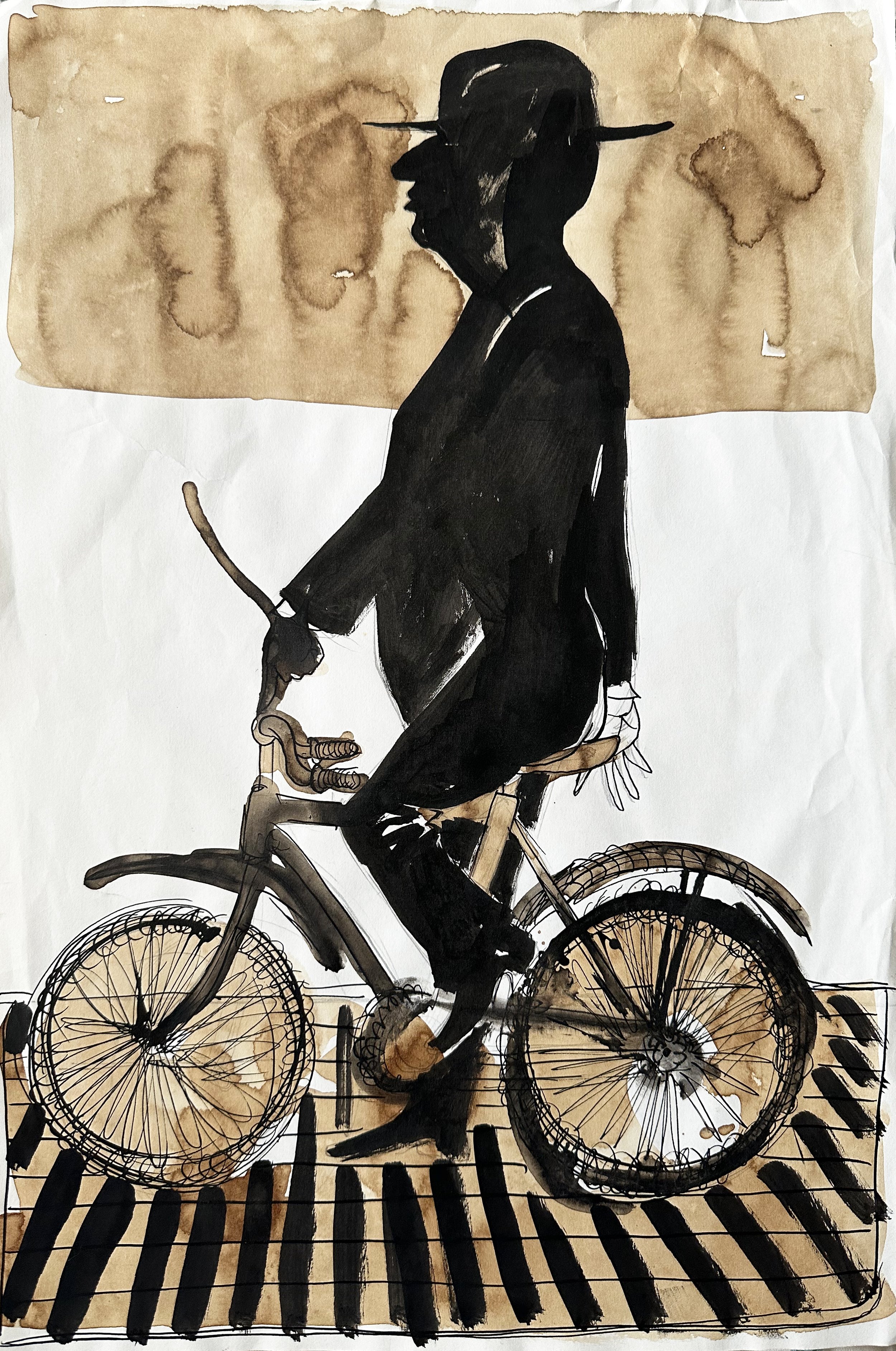 "On my way." Ink, acrylic paint and cuban coffee on cardboard. 15 in x 11 in. 2015. Miami, Florida/ USA.
