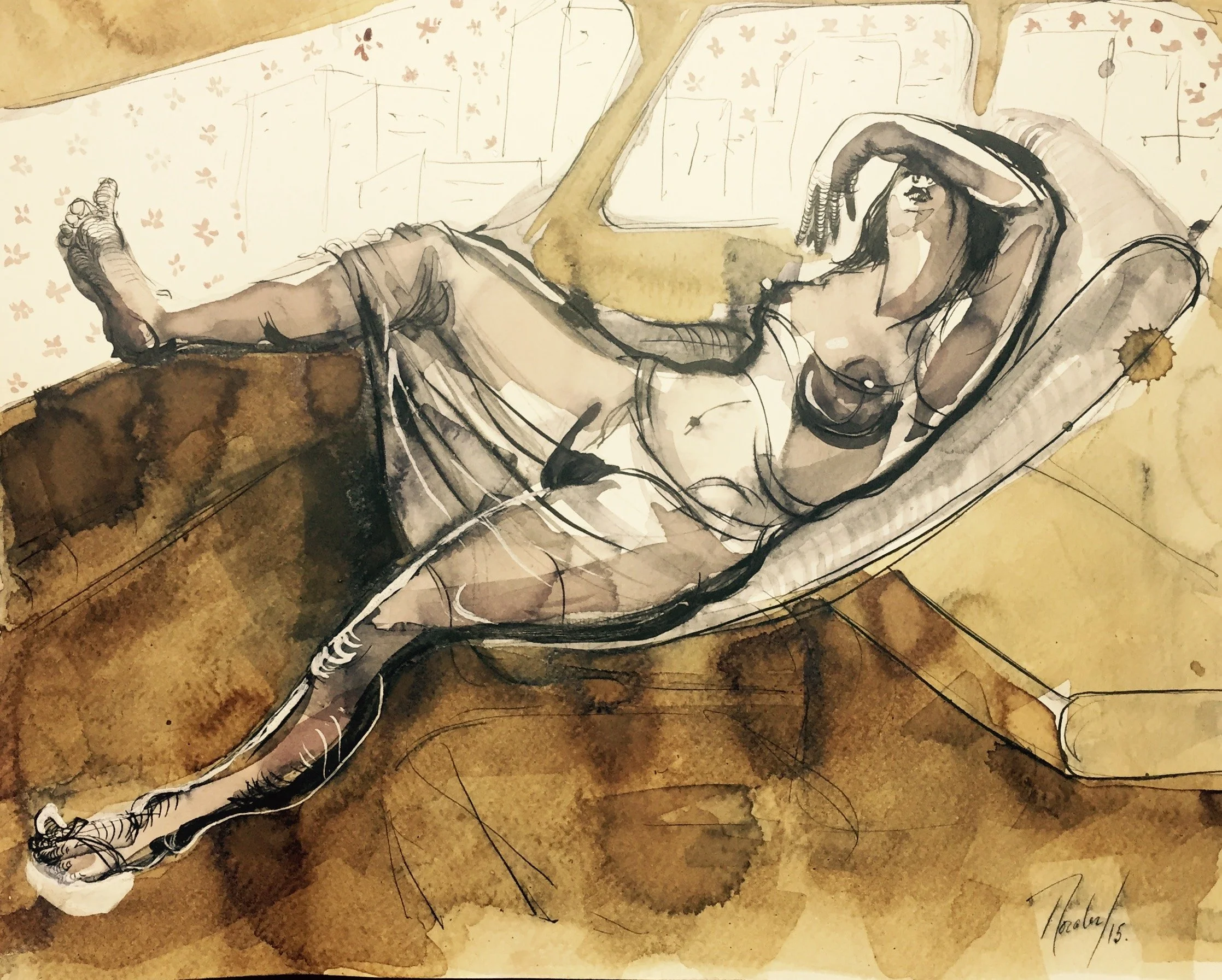 "The NAP." Ink, acrylic paint and cuban coffee on cardboard. 11 in x 15 in. 2017. Miami, Florida/ USA.